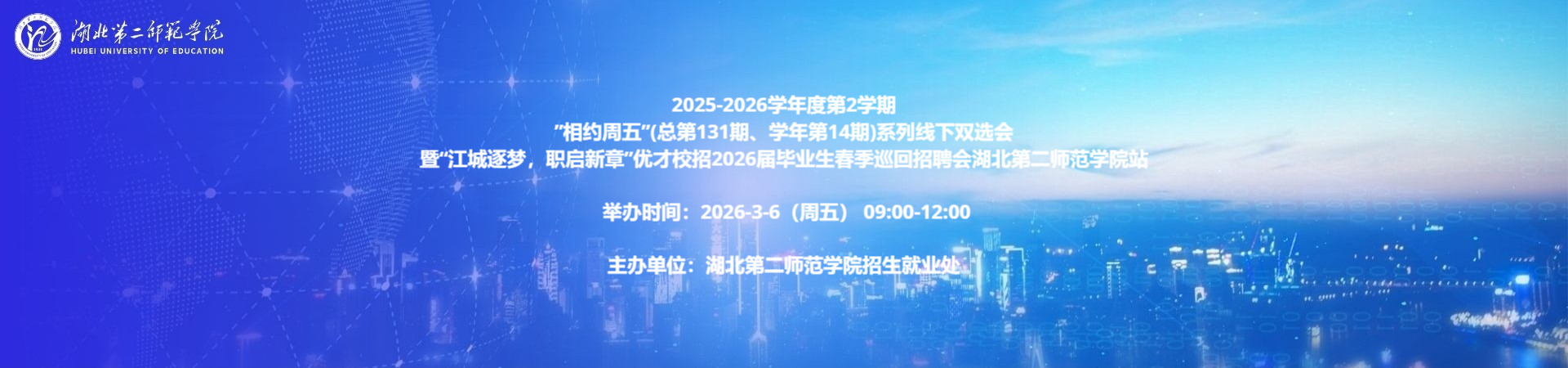 湖北第二师范学院“相约周五”系列线下双选会(总第131期、学年第14期)暨“江城逐梦,职启新章”优才校招2026届毕业生春季巡回招聘会湖北第二师范学院站